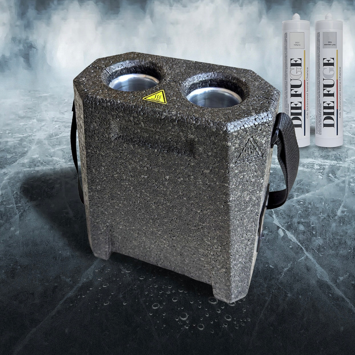 The completely new cartridge heater was developed for heating two 310 ml standard cartridges and for use in harsh industrial and construction sites. In this way, chemical-technical products such as adhesives and sealants can be brought to the optimal processing temperature. Lightweight and resistant to dirt, impacts and falls, it can be transported to the place of use using the carrying strap. Once warmed up, the cartridges retain their temperature for a long time, even without additional power supply.